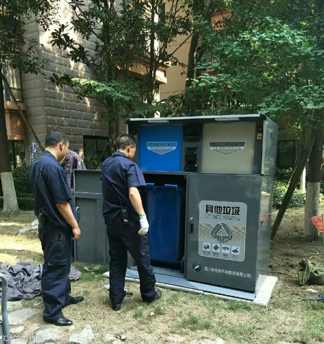 自2018年2月彭州市开展垃圾分类以来,垃圾分类服务团队采用“互联网+一体化”的分类模式,于各小区安装智能分类收集设备,居民在参与垃圾分类的同时能获得相应积分,积分可用于兑换礼品,有效的提高了居民垃圾分类参与率。同时也为了能彻底解决垃圾分类“前分后混”的问题,我们采用专业专项运输工具对小区居民投放的生活垃圾进行分类运输,建立“彭州市生活垃圾分类分拣物流回收中心”对居民投放的混合可回收物进行精细化分拣、分类存储、分类处置。