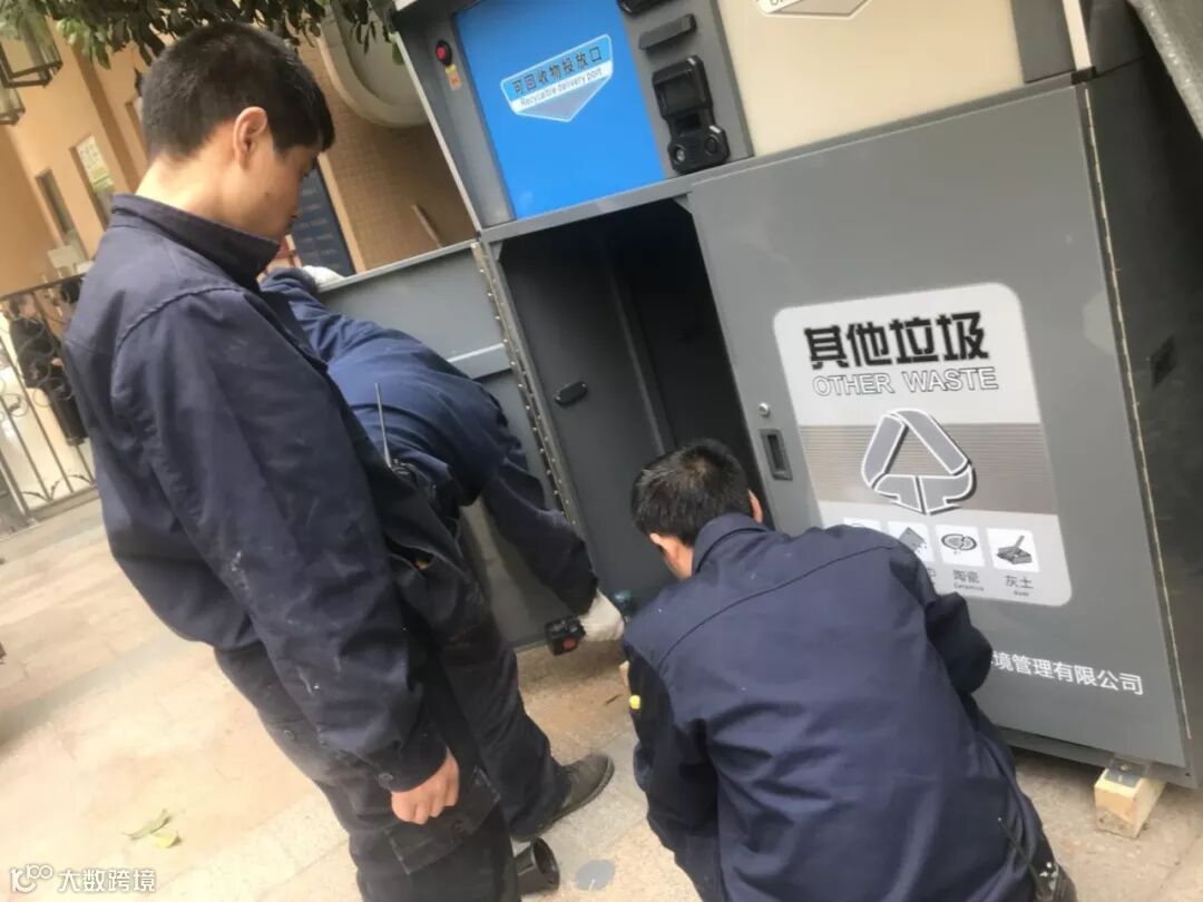 收运人员将居民投放在智能设备中的混合可回收物、有害物、厨余垃圾等,转运至特定种类的垃圾分类专项收运车上运往分拣中心,进行精细化分拣与处置。