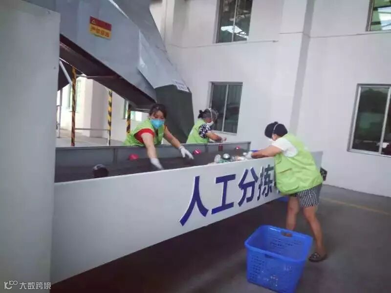 2018年6月彭州市建立“彭州市生活垃圾分类分拣物流回收中心”对进入分拣中心的混合可回收物采用机械化分拣为主,人工分拣为辅的分拣工艺,通过破袋机将居民投放的分类袋破碎,由风选机筛选出轻质物,通过磁选机筛选出金属物质,再进入滚筒机、弹跳机以及皮带传输机按照体积大小进行科学分选,最后辅以人工方式进行打包存储。
