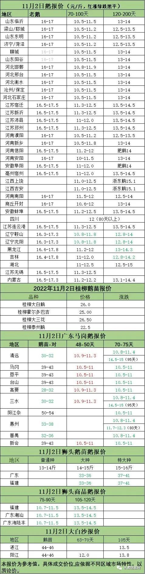 2022年11月02日鹅种蛋价格(元/枚)部分停报