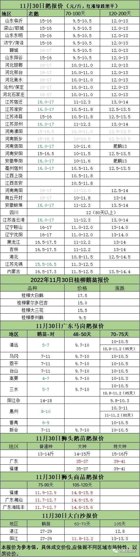 2022年11月30日鹅种蛋价格(元/枚)部分停报