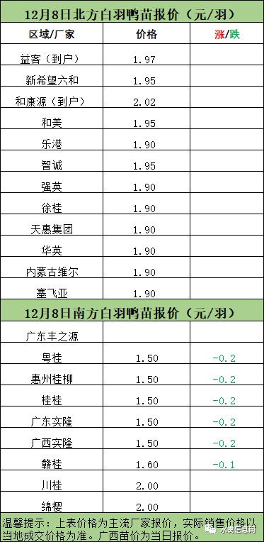 一、12月7日晚-12月8日白羽肉鸭报价;