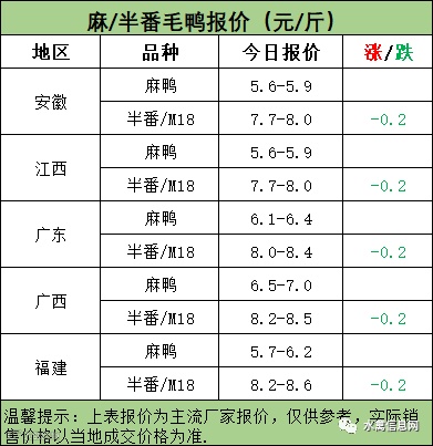 麻鸭苗报价平稳;半番鸭苗报价稳定。