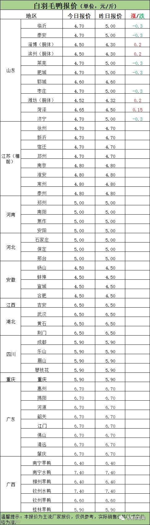 北方市场毛鸭报价弱势波动调整;疫情影响部分冷藏停产,市场成交较差,报价持续走弱;合同区域冷藏回收合同为主,当前冷藏普遍亏损态势,市场鸭收购情绪一般;