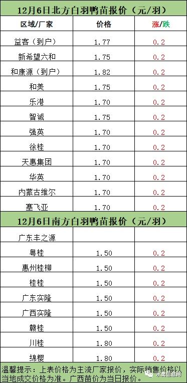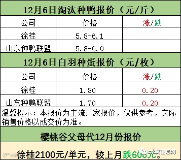 一、12月5日晚-12月6日白羽肉鸭报价;
