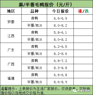 麻鸭苗报价上涨;半番鸭苗报价稳定。