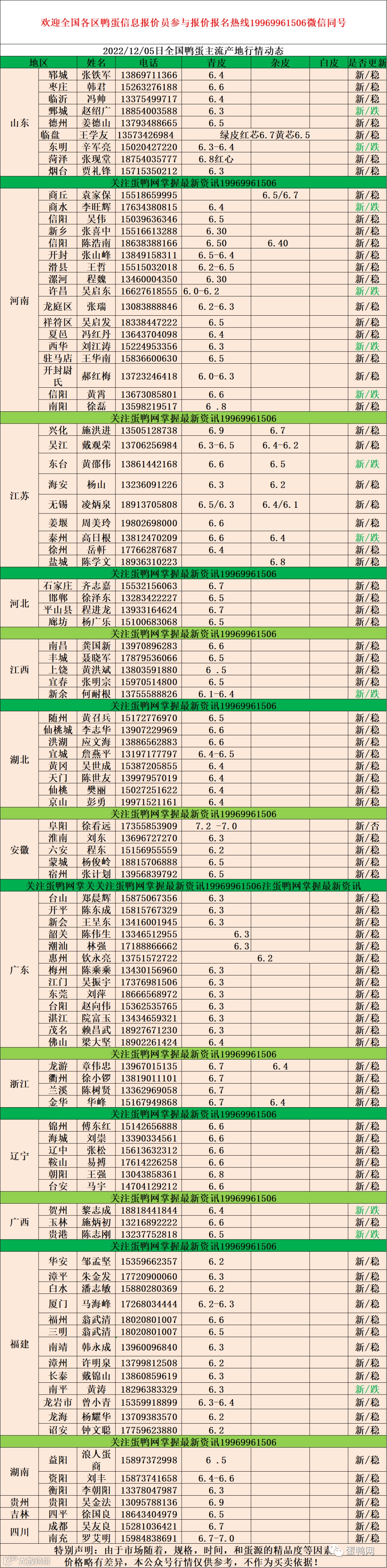 2022年12月5日:初产至10个头5.5元,10个头至9个头6.0元,9个头至8个头6.2元,8个头至7.5个头6.4,7.5个头至大蛋6.6元。