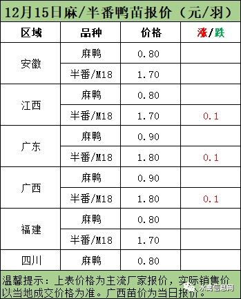 二、2022年12月15日麻鸭苗、半番鸭苗报价;