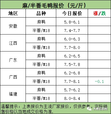 麻鸭苗报价平稳;半番鸭苗报价上涨。