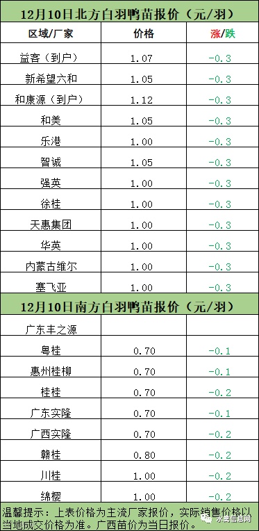 一、12月10日晚-12月11日白羽肉鸭报价;