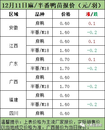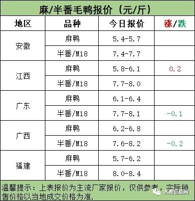 麻鸭苗报价弱稳,局部小幅上调;半番鸭苗报价下滑。