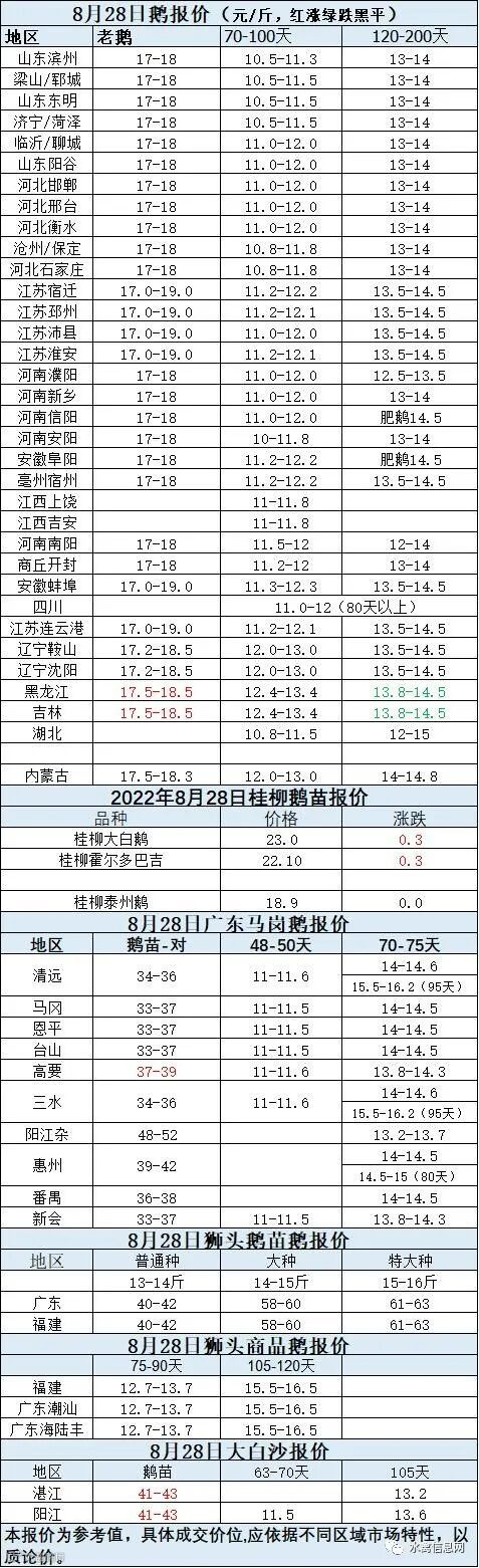 2022年8月28日鹅种蛋价格(元/枚)部分停报