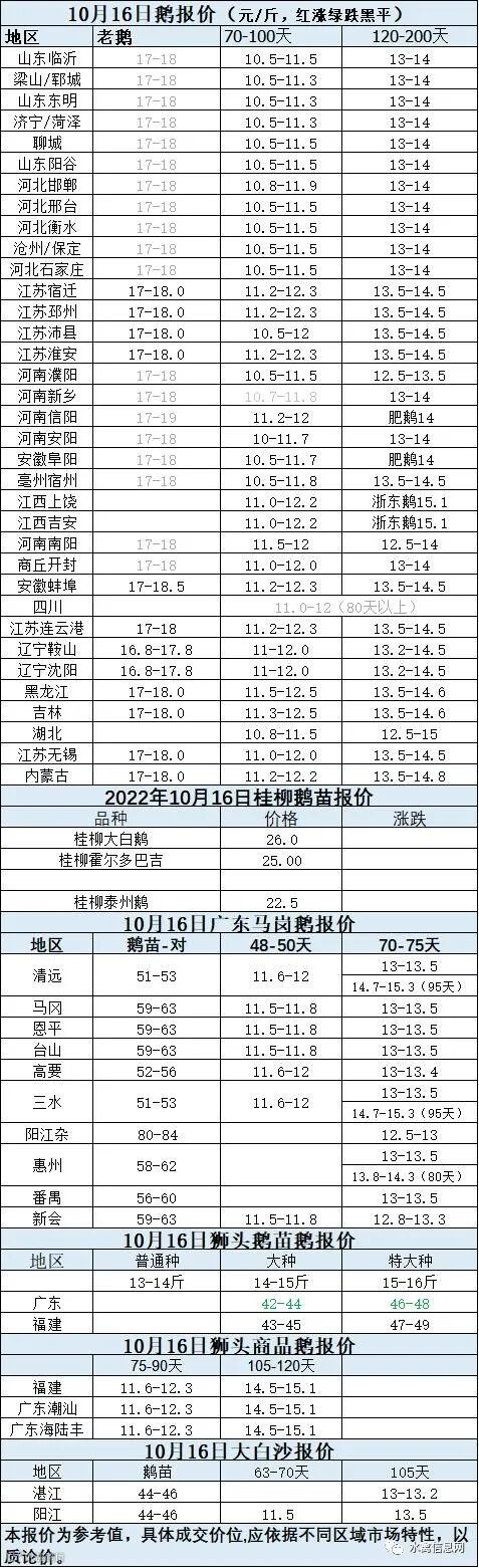 2022年10月16日鹅种蛋价格(元/枚)部分停报