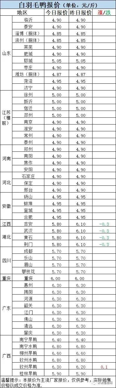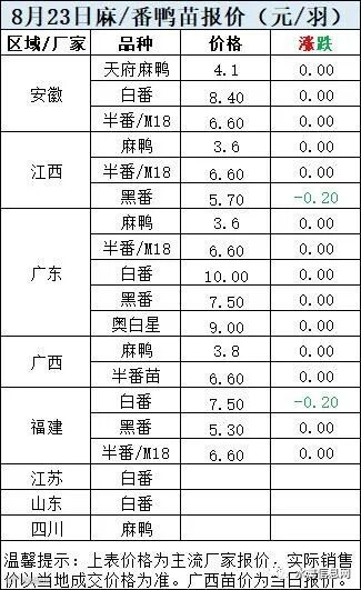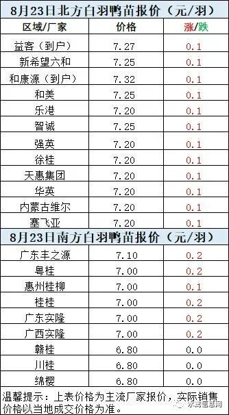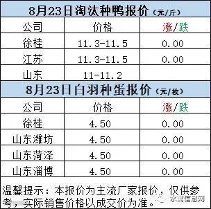 一、8月22日晚至8月23日 白羽肉鸭报价;