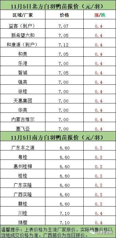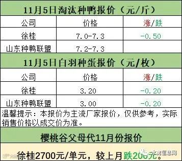一、11月4日晚-11月5日白羽肉鸭报价;