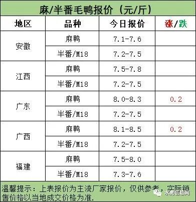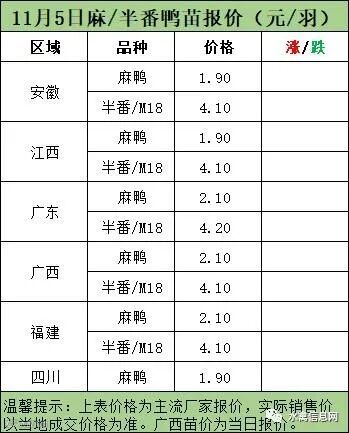 麻鸭苗报价暂稳;半番鸭苗报价稳。