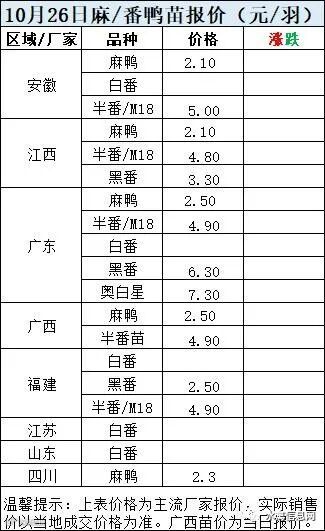 二、2022年10月26日麻鸭苗、半番鸭苗报价;