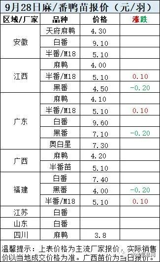 二、2022年9月28日麻鸭苗、半番鸭苗报价;