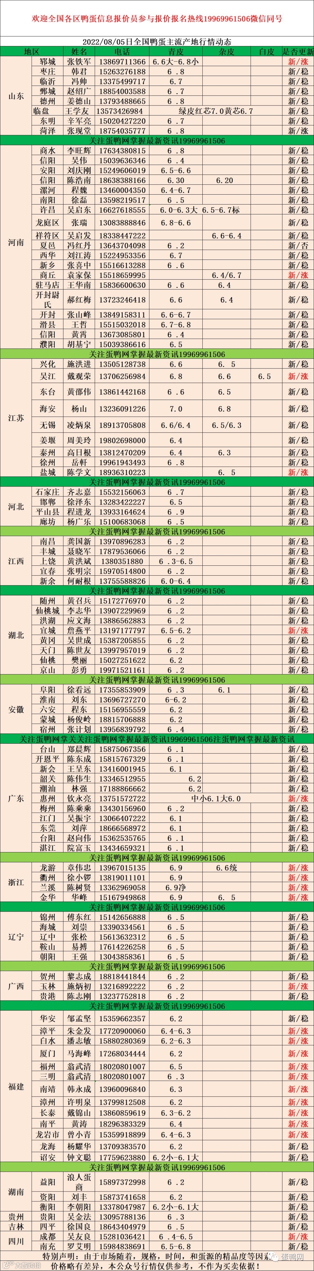 2022年8月5日鸭蛋报价