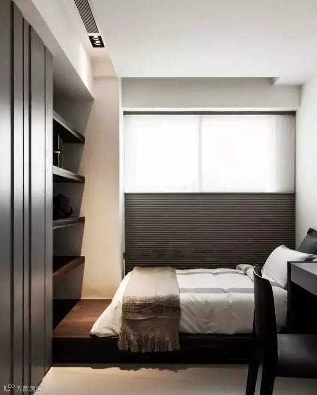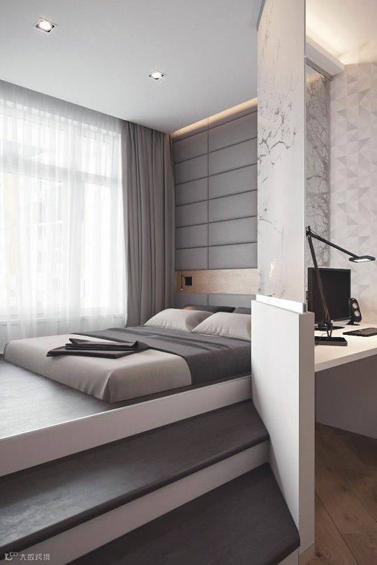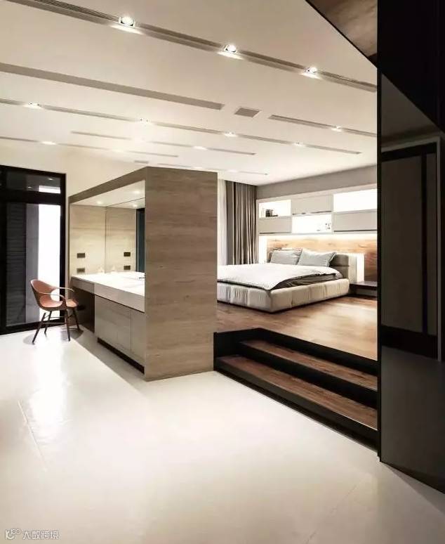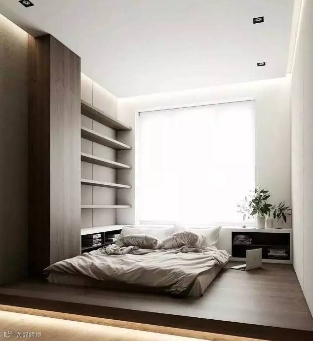 休闲的生活氛围。增加的地台与大体量的床浑然一体,