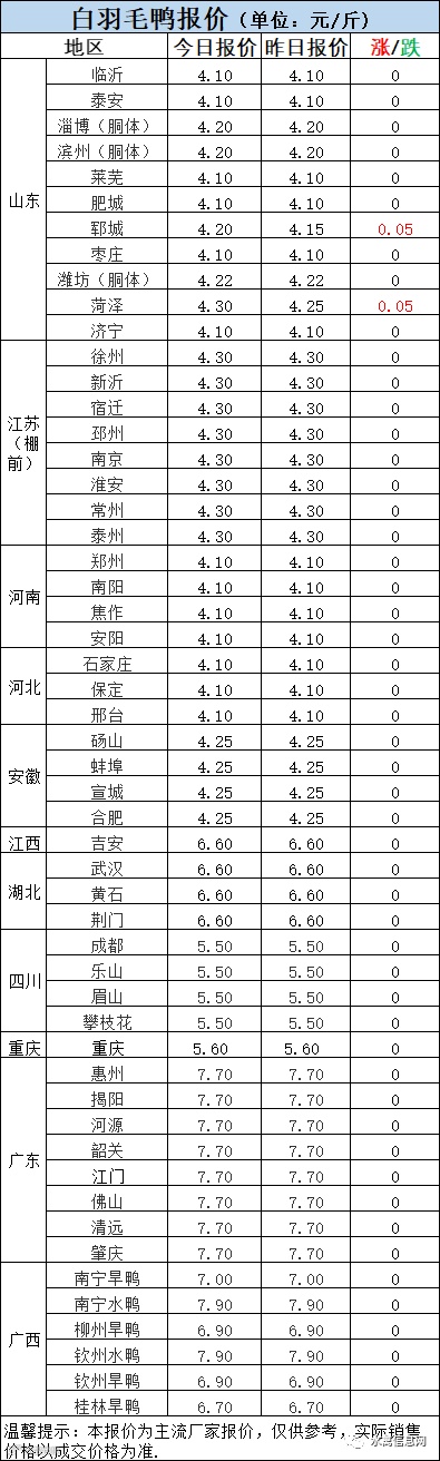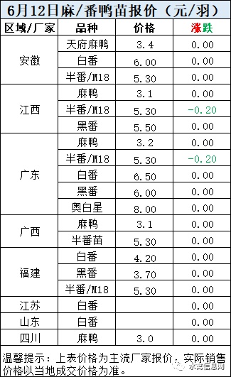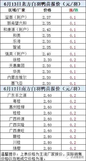 一、6月12日晚至6月13日 白羽肉鸭报价