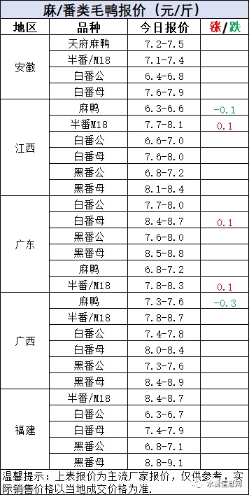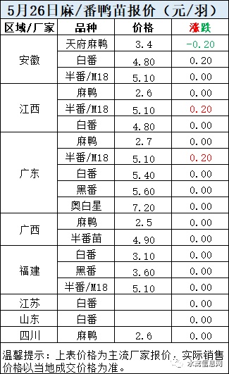 明日南方鸭苗,底部反弹,上涨0.2元/羽。