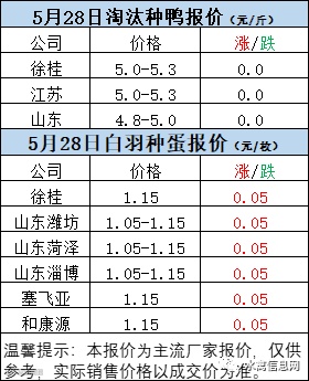 一、5月27日晚至5月28日 白羽肉鸭报价