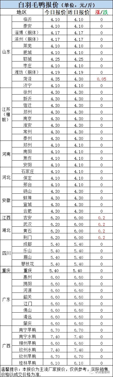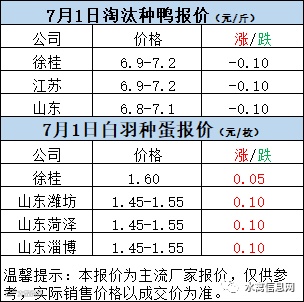 一、6月30日晚至7月1日 白羽肉鸭报价