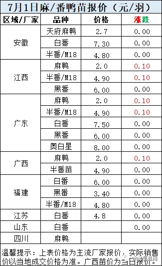 北方鸭苗持续反弹上涨0.1元/羽。南方鸭苗弱势下滑。