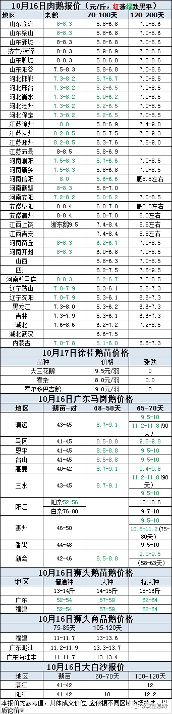 2020年10月16日商品鹅蛋价格(元/斤)