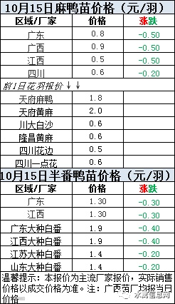 二、10月14日 麻鸭苗、半番鸭苗报价;