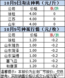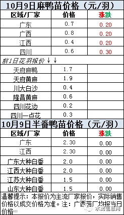 二、10月9日 麻鸭苗、半番鸭苗报价;