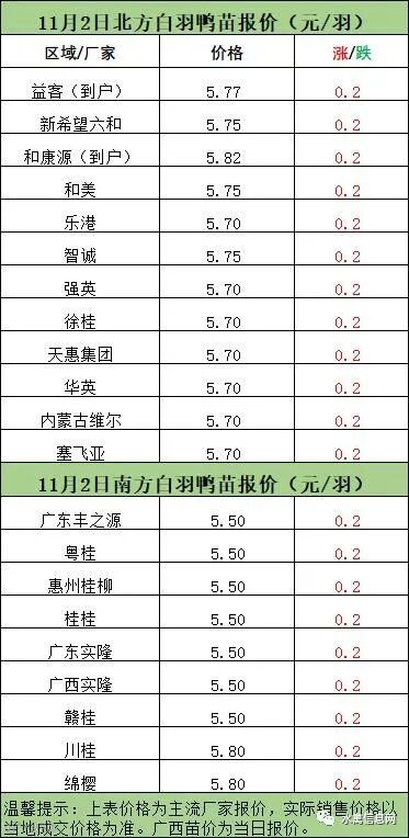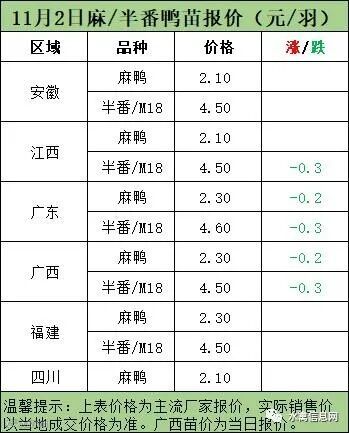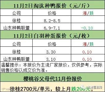 一、11月1日晚-11月2日白羽肉鸭报价;
