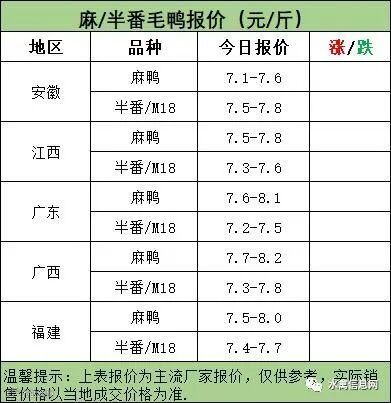 麻鸭苗报价下滑;半番鸭苗报价下滑。