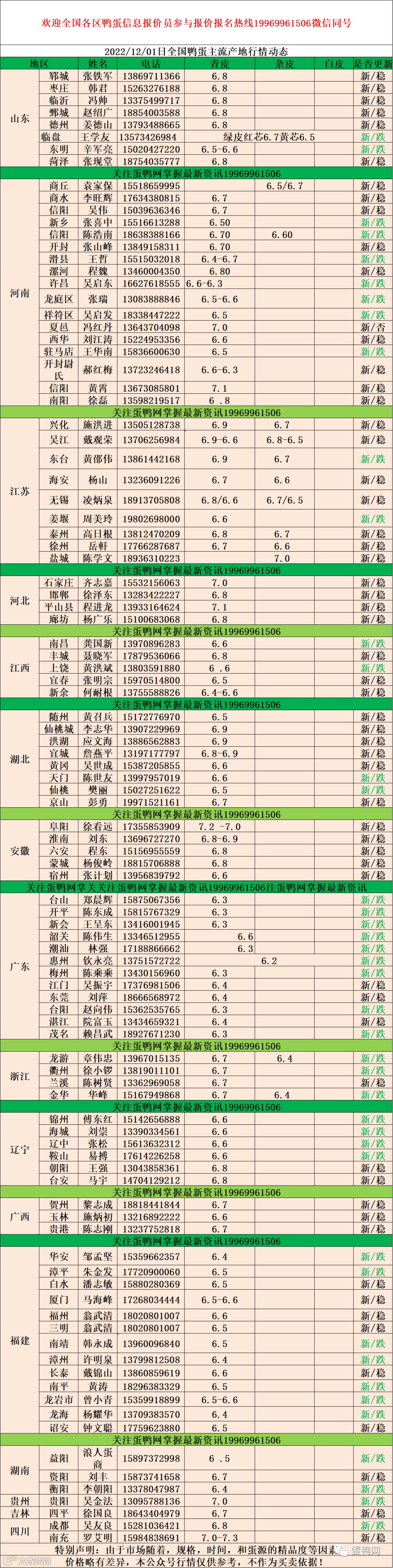 2022年12月1日:初产至10个头5.5元,10个头至9个头6.0元,9个头至8个头6.2元,8个头至7.5个头6.4元,7.5个头至大蛋6.6元。