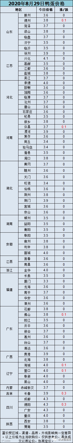 【鸭蛋价格】2020年8月29日鸭蛋报价,平稳上升。