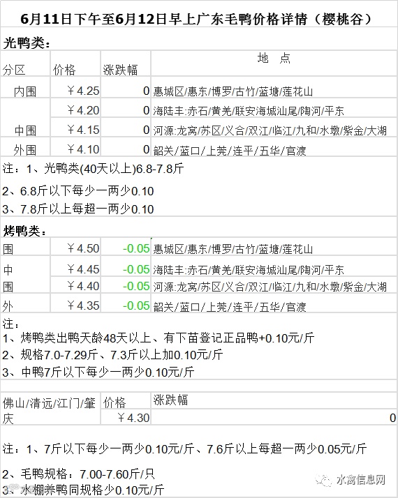 | 2020年6月11日两广毛鸭活禽报价 | ||||