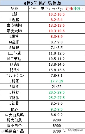 2020年8月3日晚至4日毛鸭报价