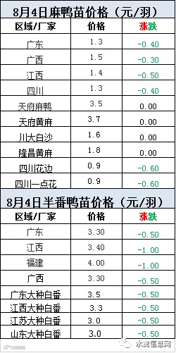 2020年8月4日鸭苗报价