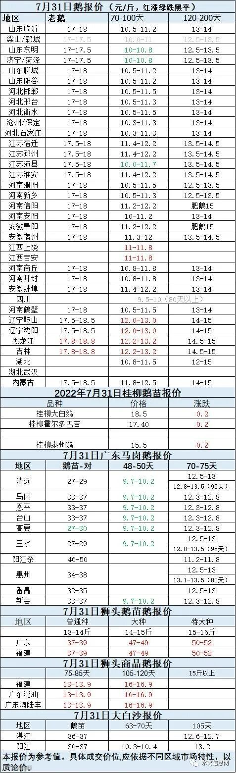 2022年7月31日鹅种蛋价格(元/枚)部分停报