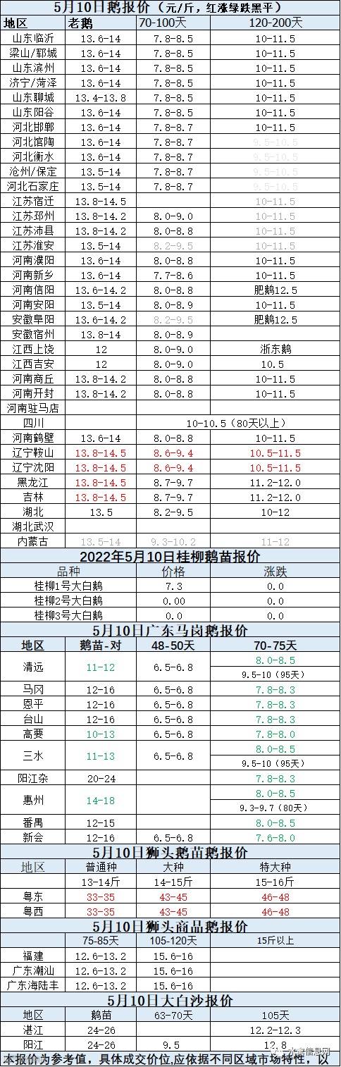 2022年5月10日鹅种蛋价格(元/枚)部分停报