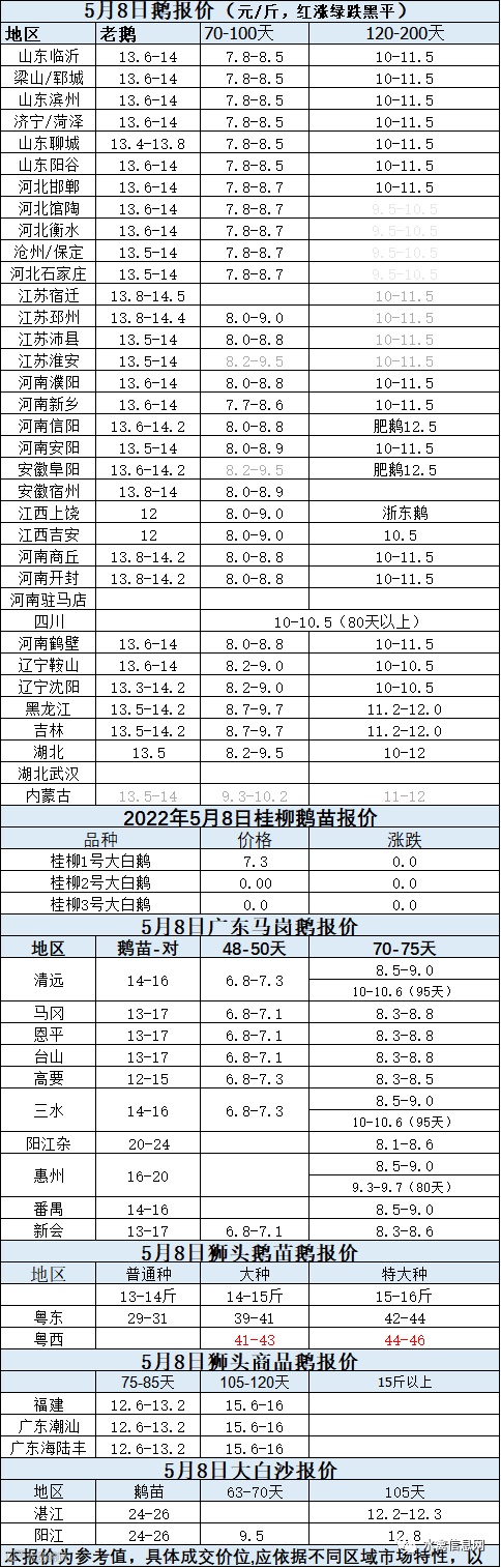 2022年5月08日鹅种蛋价格(元/枚)部分停报