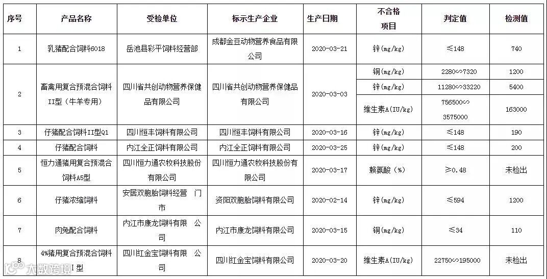 04 四川公布5-6月份饲料检测不合格产品名单:资阳双胞胎等8家公司产品在列