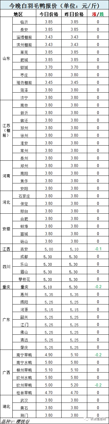 今晚麻/番毛鸭报价整体稳定,局部涨跌调整。