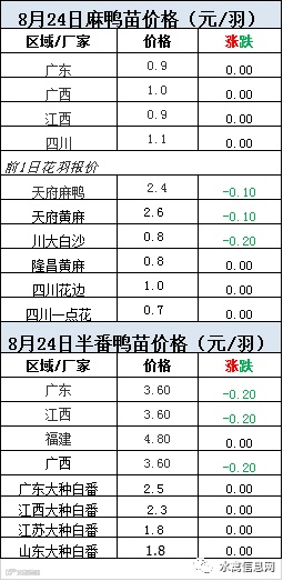 番鸭类毛鸭今晚报价暂稳。开学季来临,宴请增多,麻鸭消费加快,价格稳中上扬。