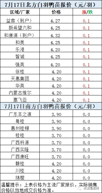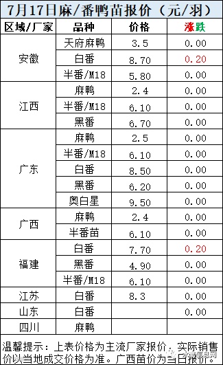 一、7月16日晚至7月17日 白羽肉鸭报价