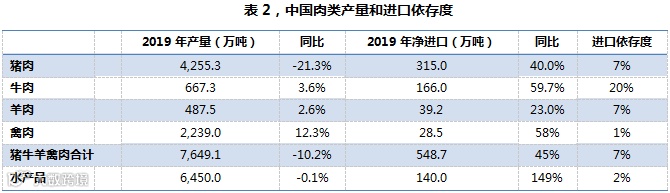 但是我们认为上述措施不太可能扩展到全面禁止进口肉类,对国内肉价的助推作用也不会很显著。理由是:从各地发生的疫情来看,核酸检测为阳性的进口产品大多数为冷冻水产品,猪牛羊肉产品尚未见报道。按2019年数据,中国共进口冷冻水产品353万吨,同比增长29%;出口量为213万吨,同比下降1.9%;即净进口量约为140万吨。而同年国内产量为6450万吨,即净进口量不足国内供给量的3%。同时水产品又只是肉类供给的一部分,且与猪牛羊禽肉的相互替代性较弱。因此我们认为部分地区暂停进口的举措对整体肉类供给形势的影响并不大。多位专家也表示不建议全面暂停进口肉类产品。
