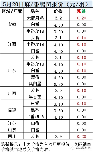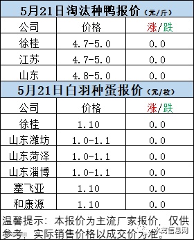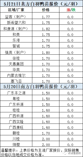 一、5月20日晚至5月21日 白羽肉鸭报价
