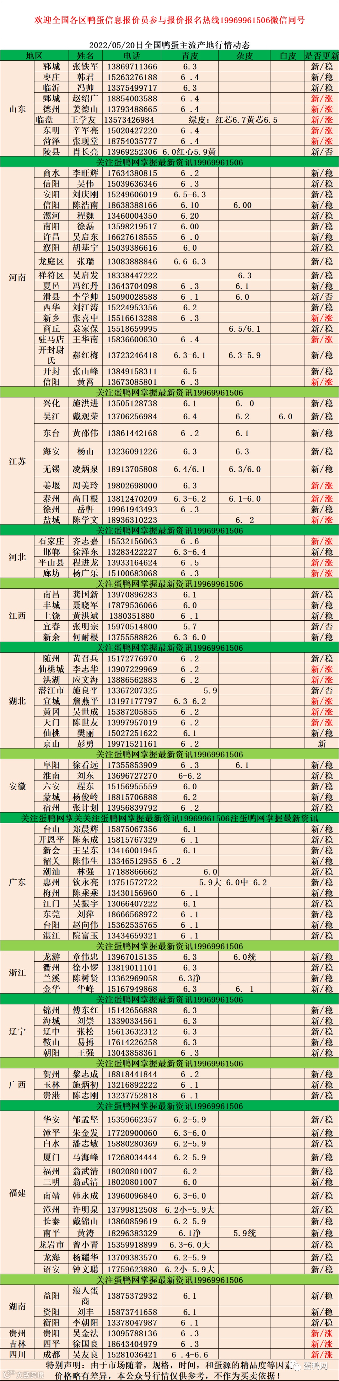 2022年5月20号鸭蛋报价