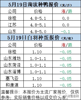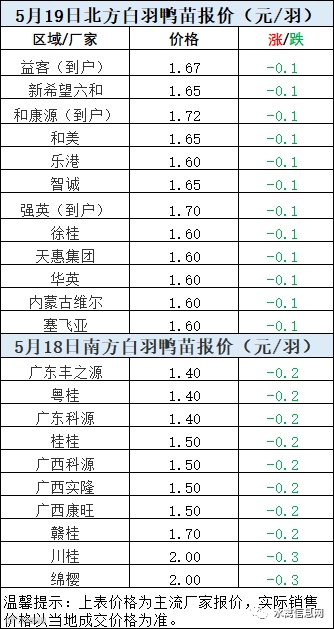一、5月17日晚至5月18日 白羽肉鸭报价